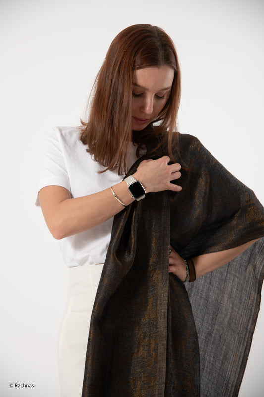 Fine Cashmere Self Zari all over Reversible Stole