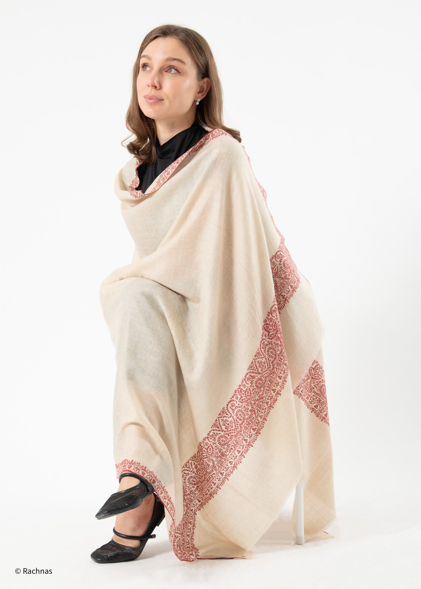 Experience the allure of Kashmiri craftsmanship and indulge in the luxurious comfort of Pashmina wool with this exquisite shawl—a cherished treasure that captures the essence of Kashmir's majestic charm.