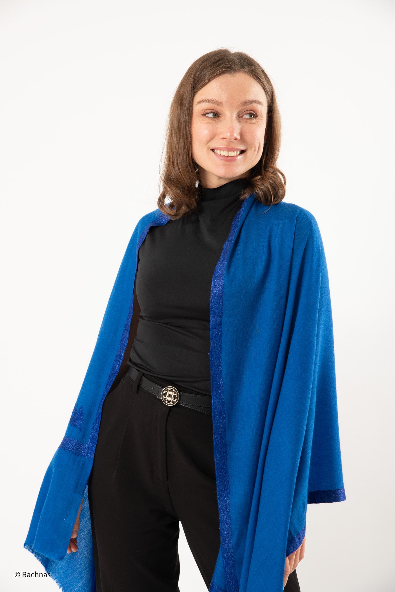 Introducing our luxurious 100% Cashmere Needlework Shawl featuring the exquisite Hashidar border adorning all four sides—a true masterpiece originating from the enchanting valleys of Kashmir, India.