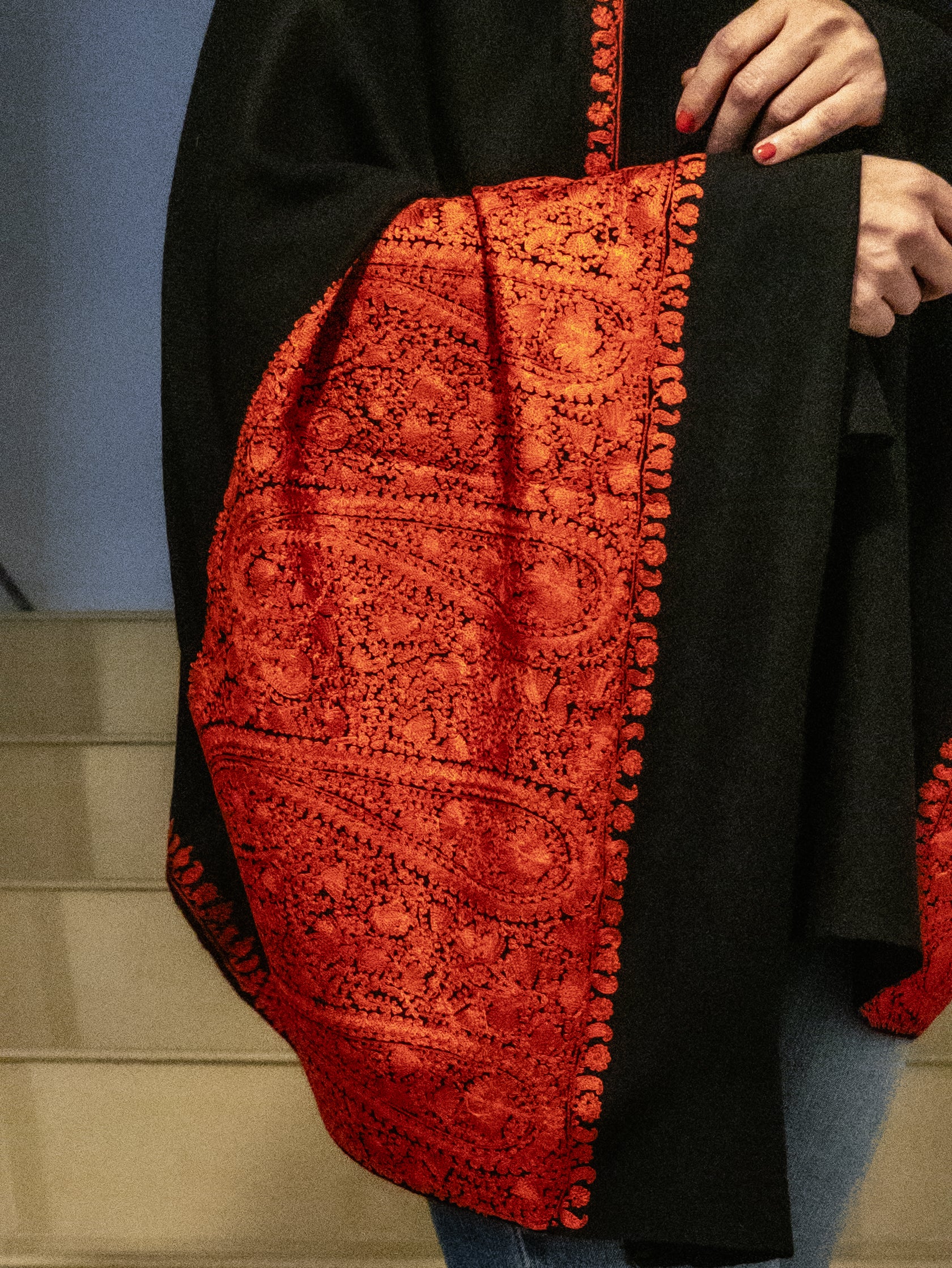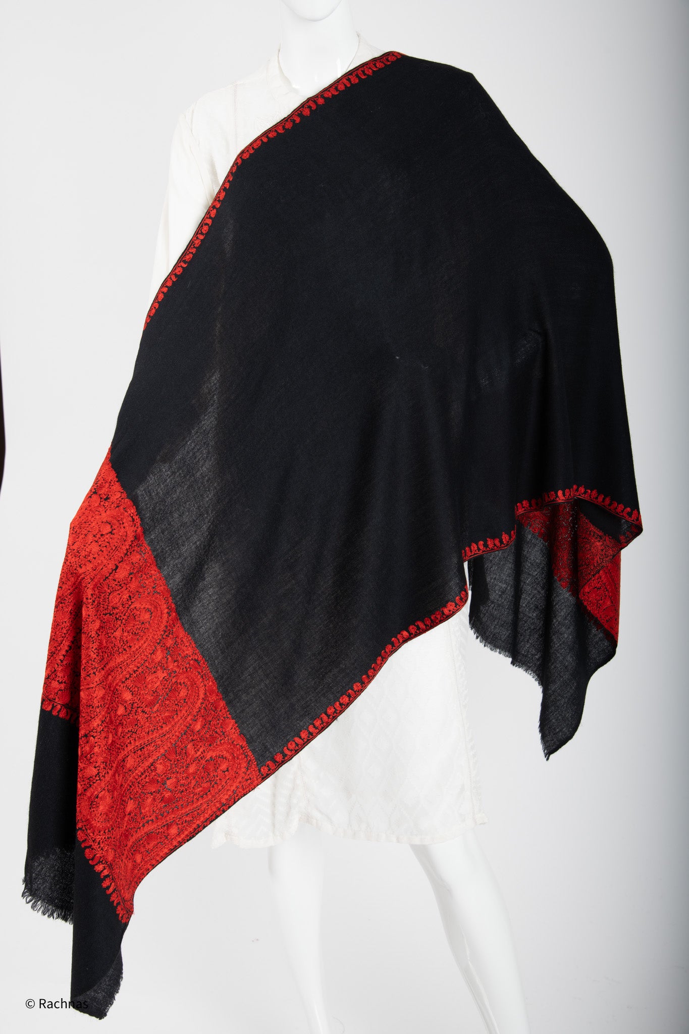 Our exquisite 100% Cashmere Paper Machine Pal Work Shawl, a true testament to the timeless craftsmanship originating from the picturesque valleys of Kashmir, India.