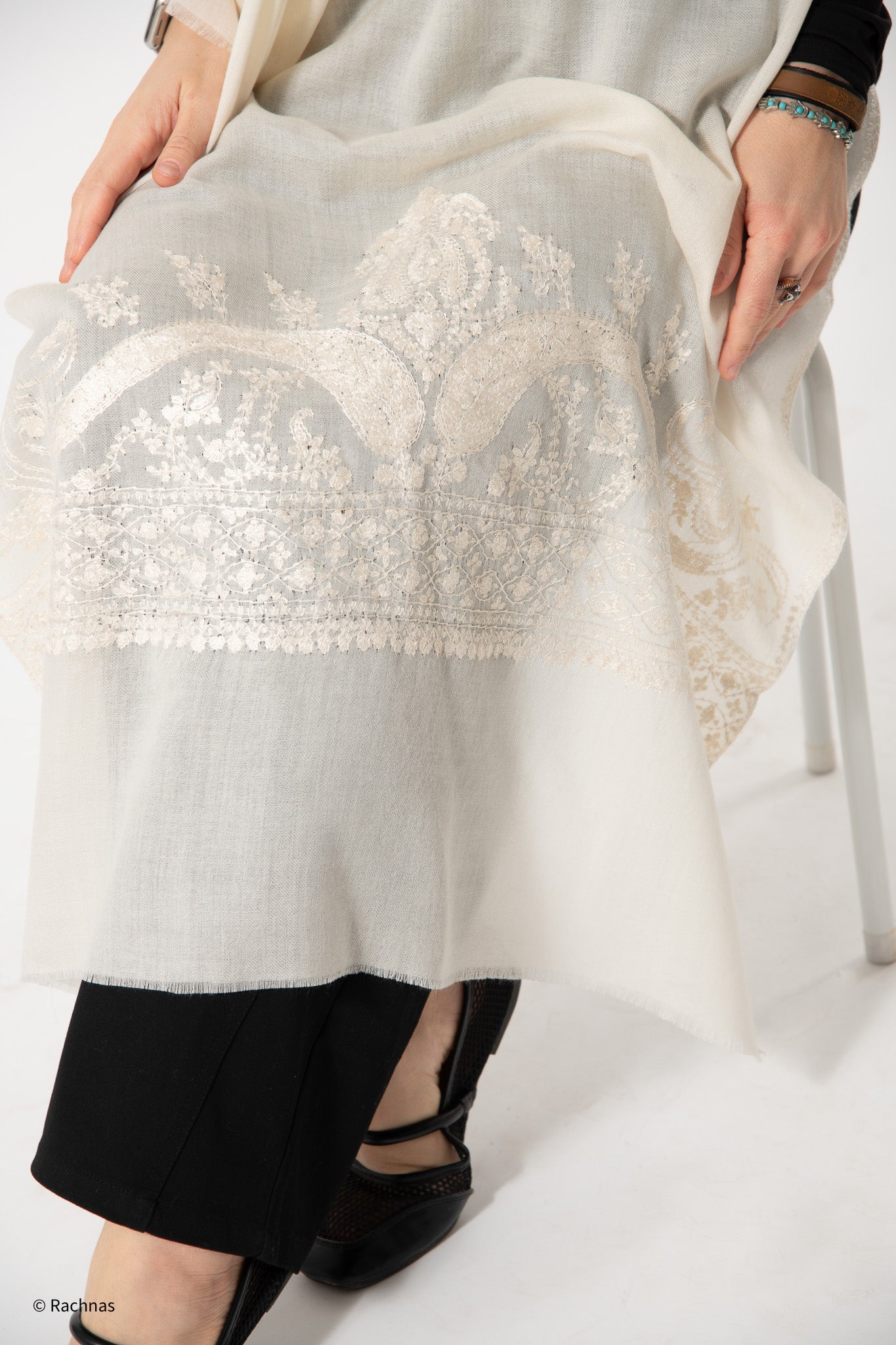 Wrap yourself in luxury and elegance with our 100% Cashmere Reel Pala Work Shawl, where every thread tells a story of tradition and skill. Whether draped gracefully over your shoulders or styled as a statement accessory, this shawl promises to elevate any ensemble with its timeless beauty and sophistication.