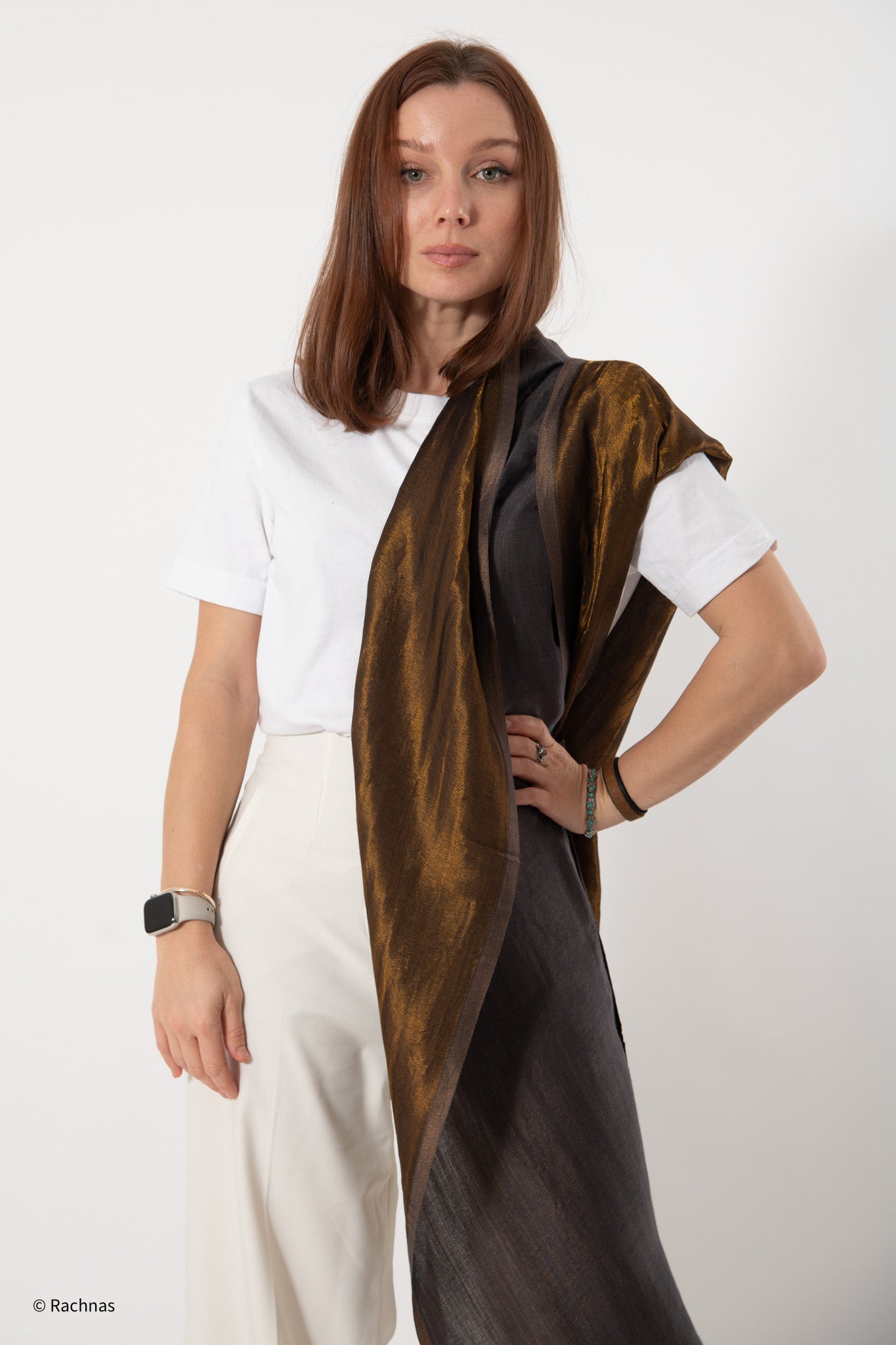 100% Cashmere Reversible Zari Stole, a refined expression of luxury, showcasing intricate zari craftsmanship on both sides for versatile, effortless elegance.