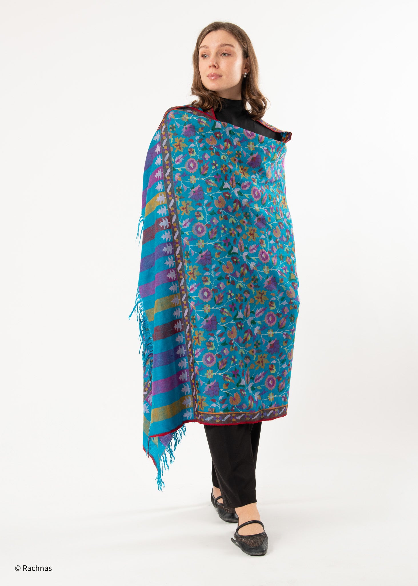 Handcrafted with meticulous attention to detail, this shawl is made from the finest Pashmina wool, sourced from the soft undercoat of Himalayan mountain goats. Renowned for its unmatched softness and warmth, Pashmina wool ensures luxurious comfort with every wear.