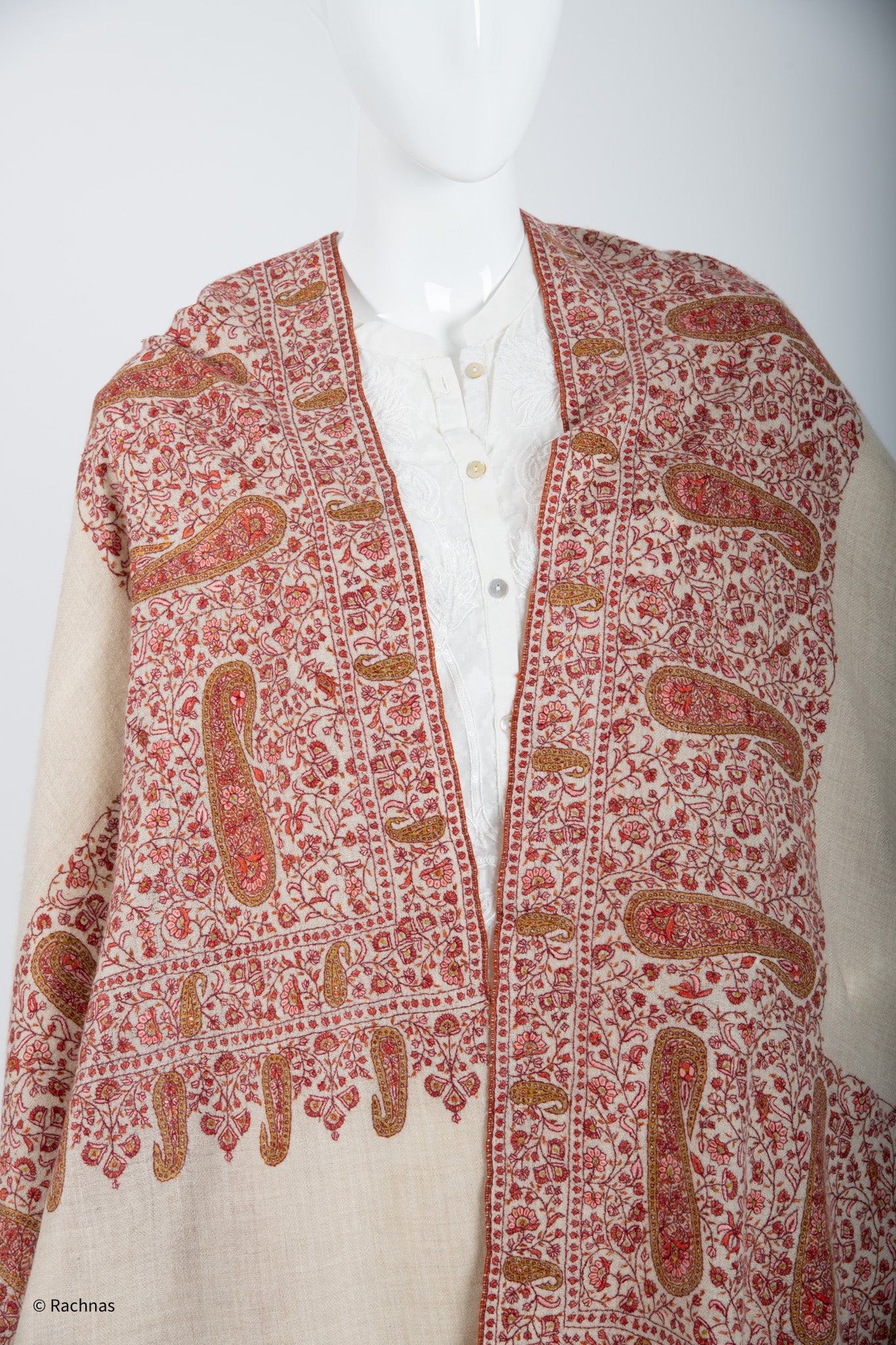 Pure Pashmina Shawl with Natural Embroidered Border on All Sides, a true testament to the timeless elegance and craftsmanship originating from the enchanting valleys of Kashmir, India.