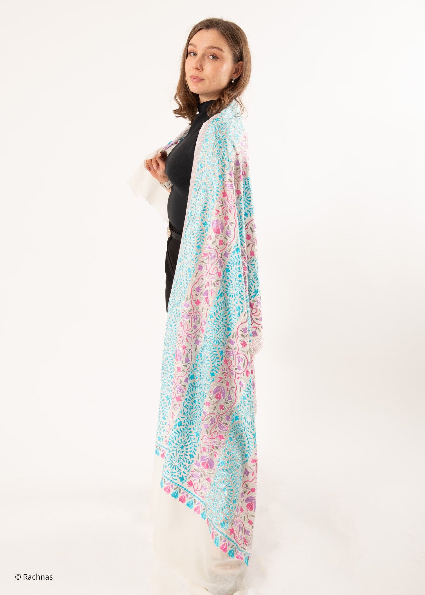 Stole - all over cashmere embroidery